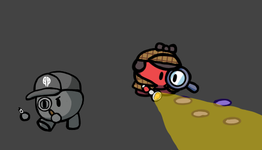 What are they yappin’? Detective Baka is searching for clues with a flashlight like what normal detectives do, and Vortex is focusing really hard in concentration and he is holding something, (something that’s really small) trying to see with a magnifying glass and he is really big also, filling up the thumbnail like this for example,
