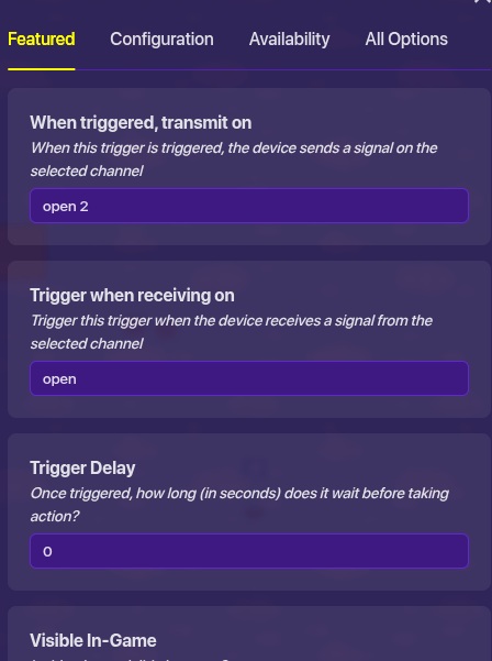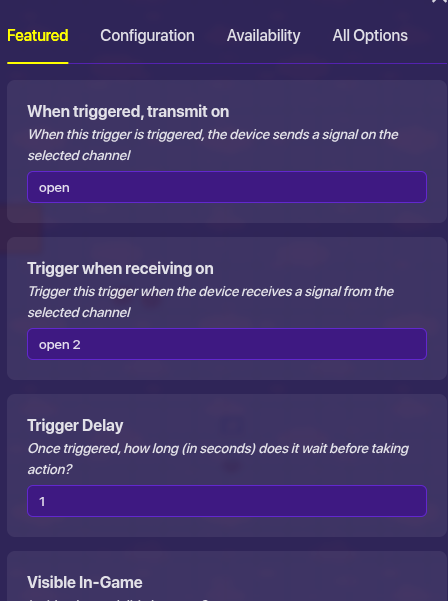 Now place down a button, make it not visible in game, and make it so that when you press it, it channels the channel, “open”.