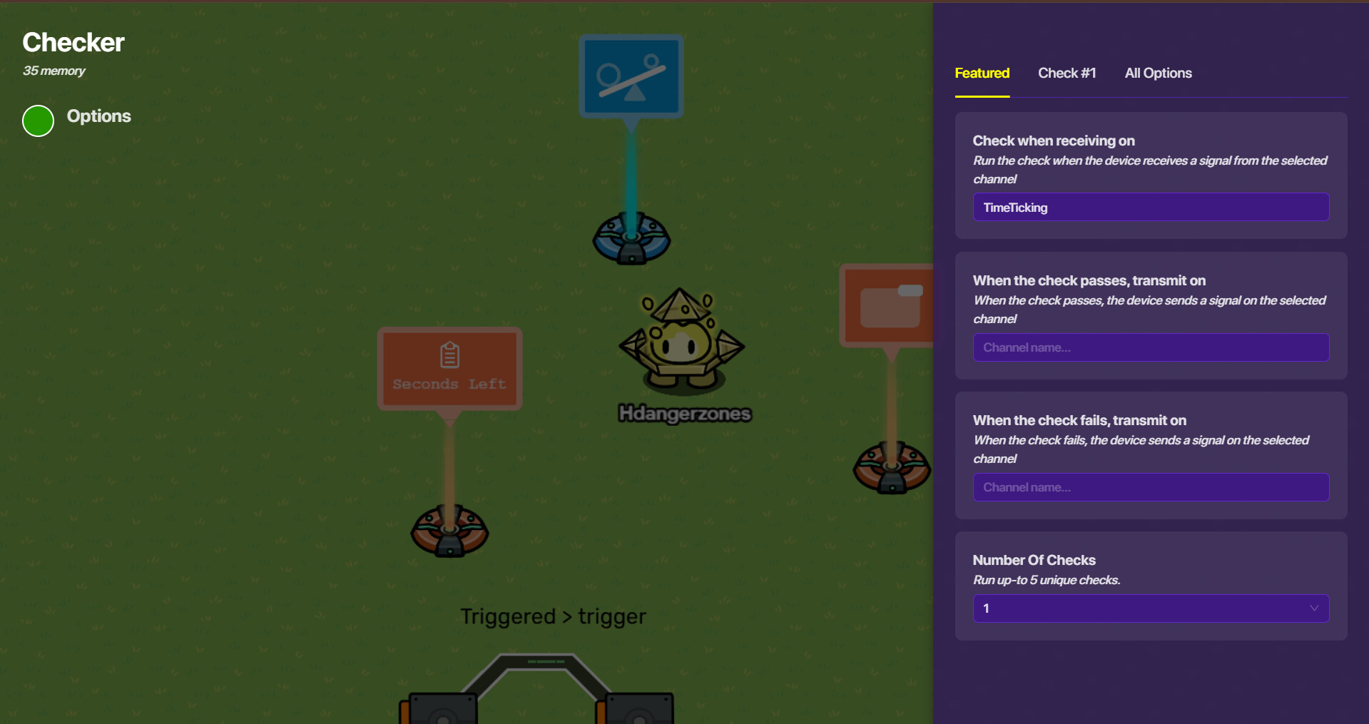 Now, wire whatever you want to the checker! It can be an end game device, popup device, anything you want to happen when they run out of time. Make sure it happens when the check PASSES for wiring, not when it fails.