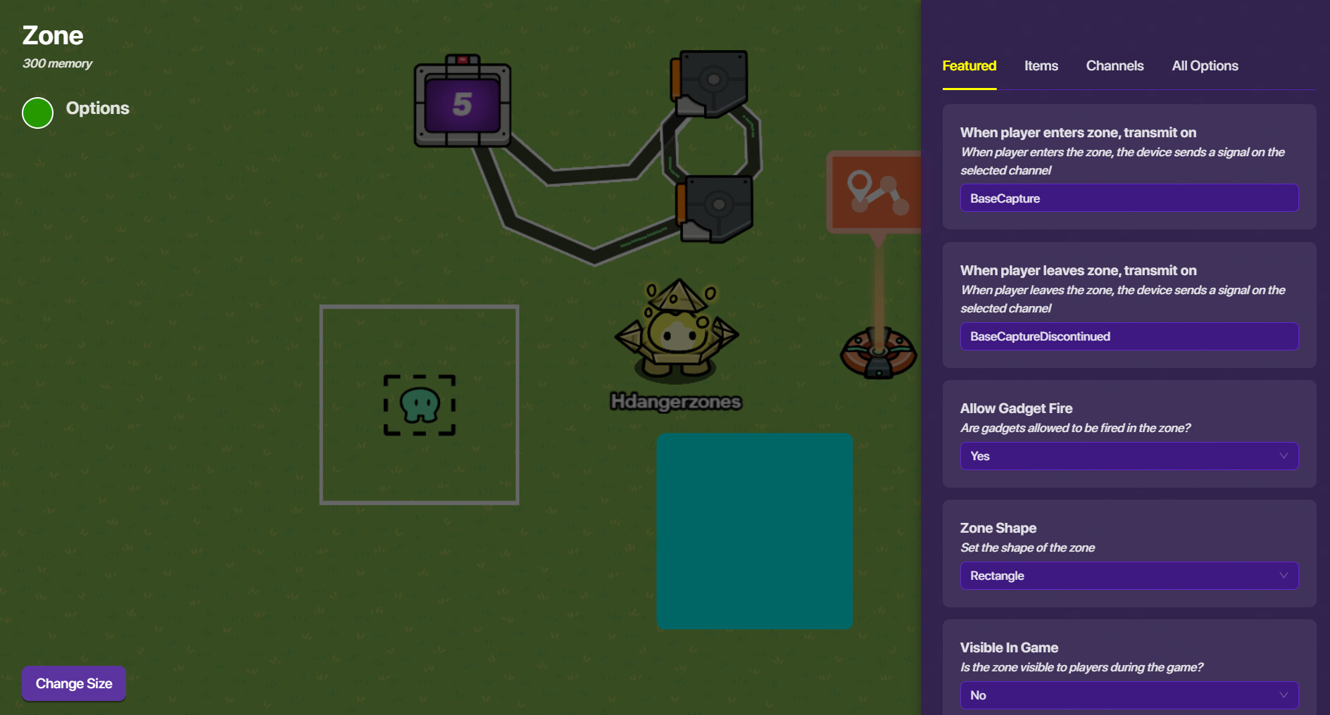 If you copy & paste the exact same setup, it’ll simultaneously activate/deactivate ALL OF THE ZONES EVERYWHERE!! So for the channels “BaseCapture” and “BaseCaptureDiscontinued”, you may want to rename them in a unique way. The easiest way is to number then (“BaseCaptured1” for the first base, “BaseCaptured2” for the second, so on and so forth).