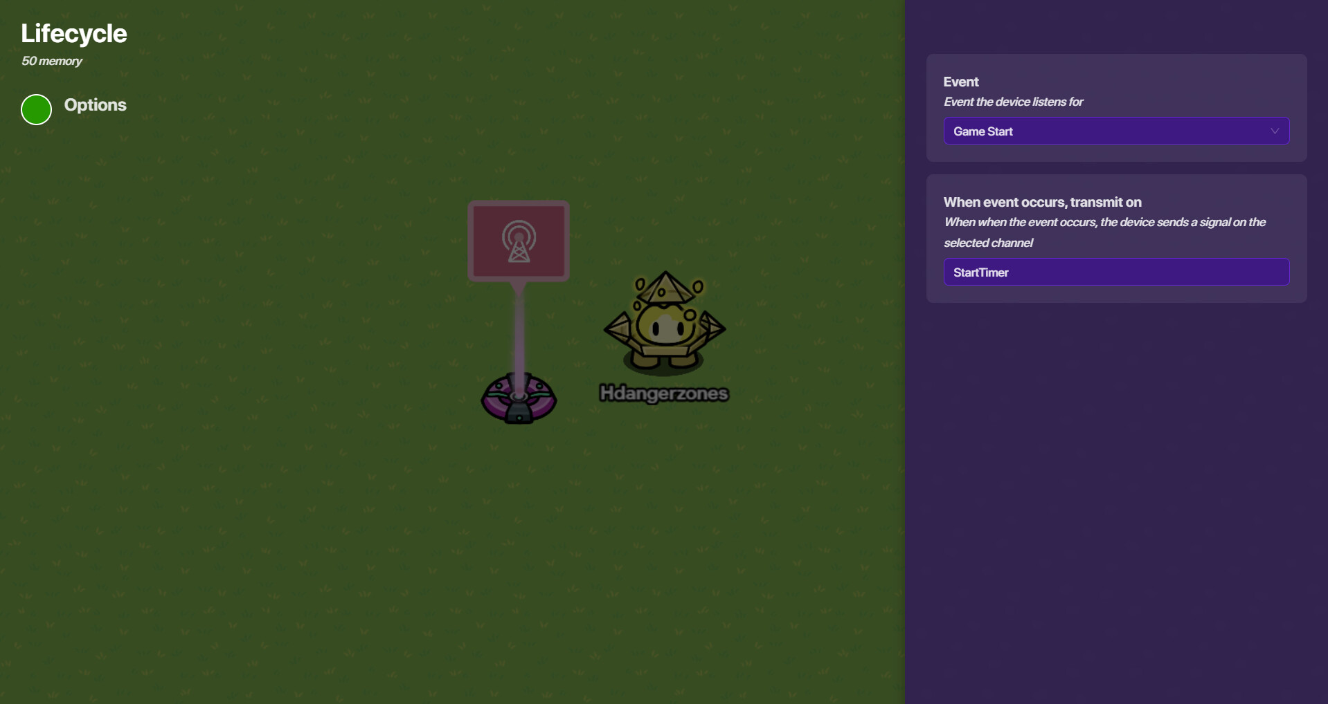 First off, add a lifecycle device. It should track game start once you put it down, but just re-confirm that it does. Also make it transmit on “StartTimer” when the event occurs.
