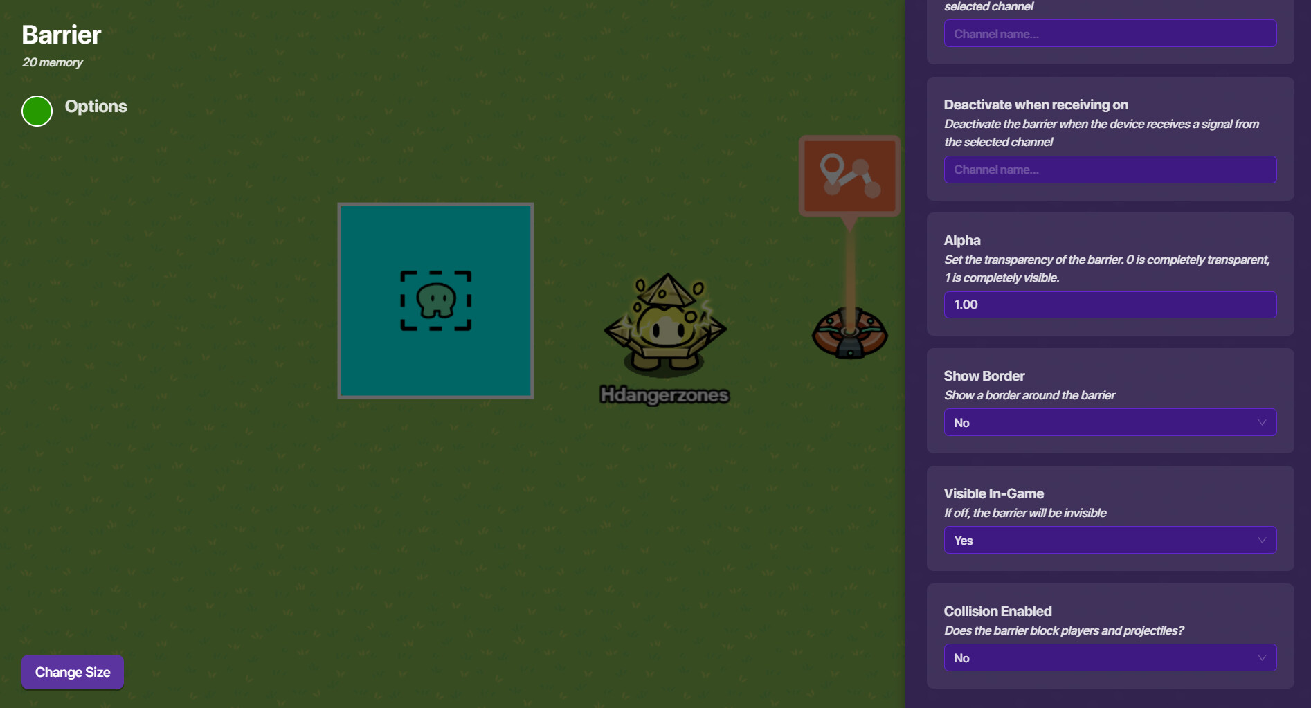 I added a no-collision barrier that’s inactive on game start, has no collision, and is colored. All the important settings are there. If you like the color I used, the RGB is 0, 255, 251.