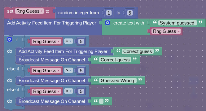 Also your block code is inefficient, instead just have the first “If, do” and then use the “Else” part to make it do everything else. It saves blocks.