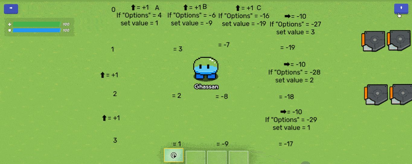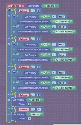 When the property let’s say is “1” option “A1” is triggered because it’s value is 1 which send out the signal A1 which activates the barrier.