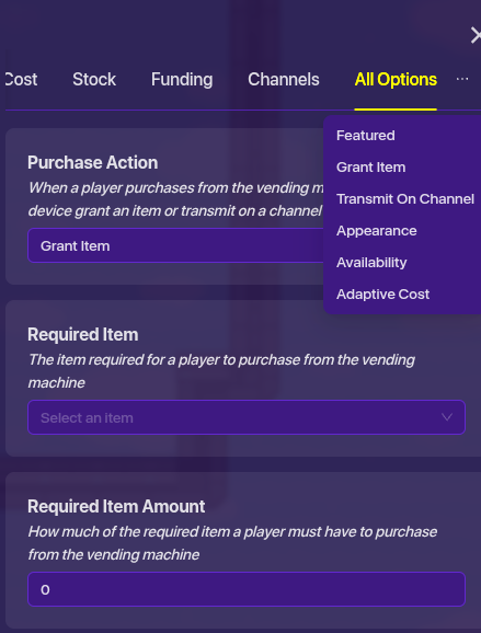 You can use a vending machine that triggers on a channel when you buy from it, use a speed modifier and set to activate when it receives on the channel the vending machine sends