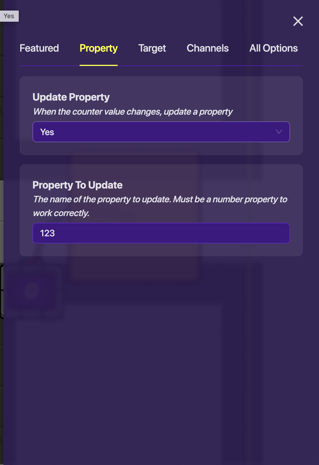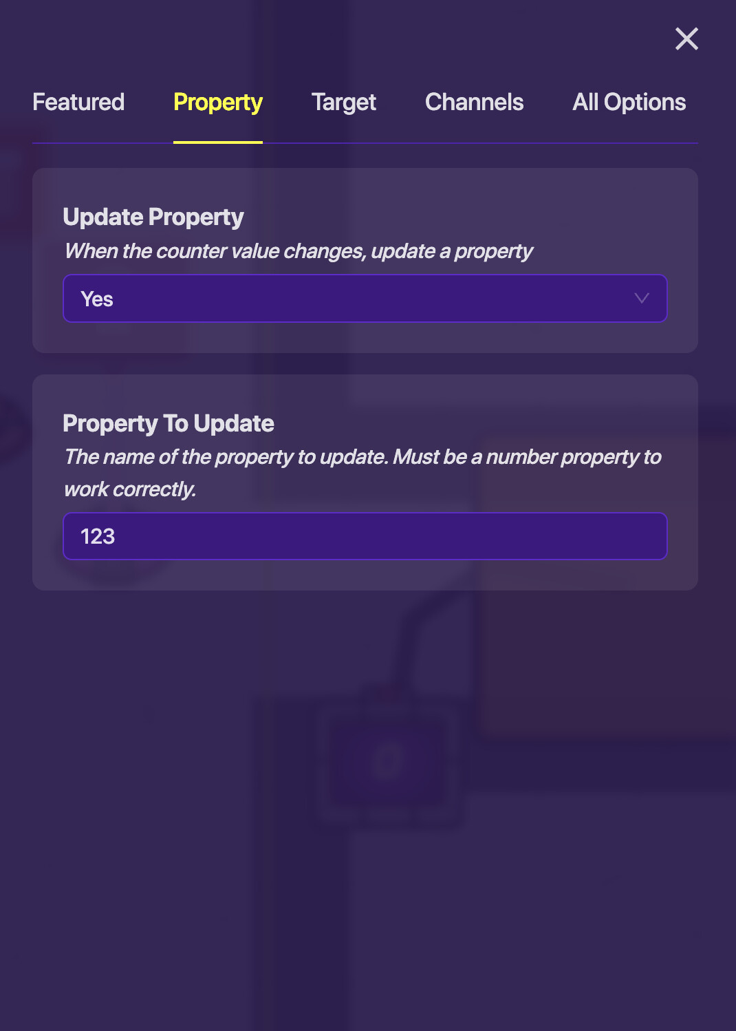 then set the value of it what you want the counter to be (the counter value and the property value must be the same)