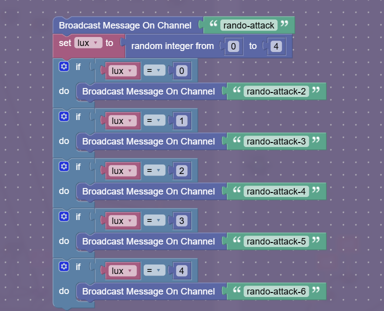but for now to simplify your random attack blocks try this and just create the corresponding channels for 1 through 5 for the attacks you’re doing