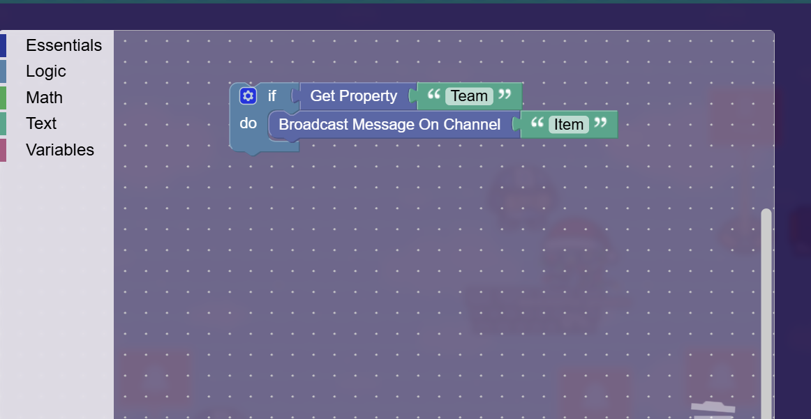 If | Get Property | "Team" = 1 | Transmit on | "Item"