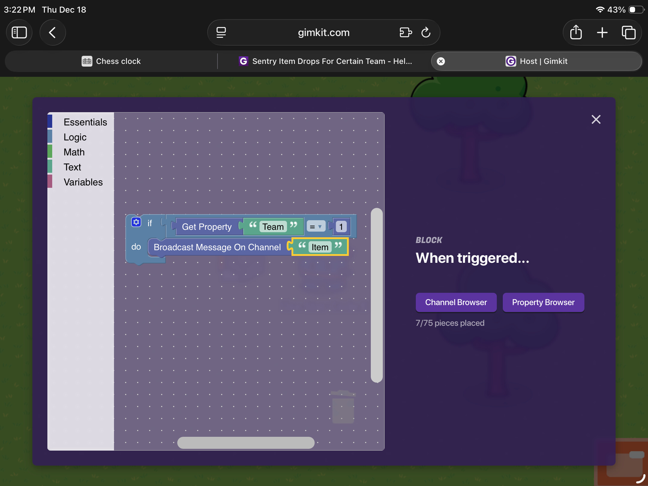 Edit - Wait I know what you mean now, Im pretty sure its in the logic section, its the = sign with two holes on either side. You need to put that block inbetween the “Get property - Team” block and the “1” block.