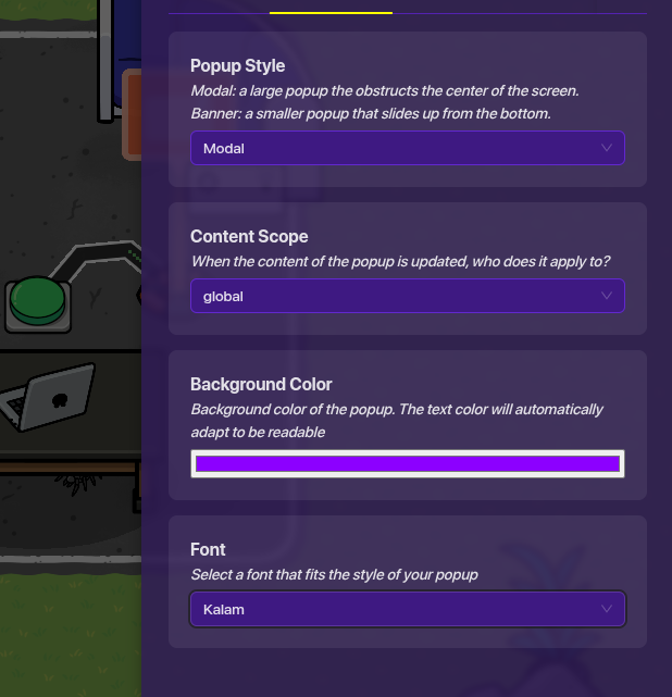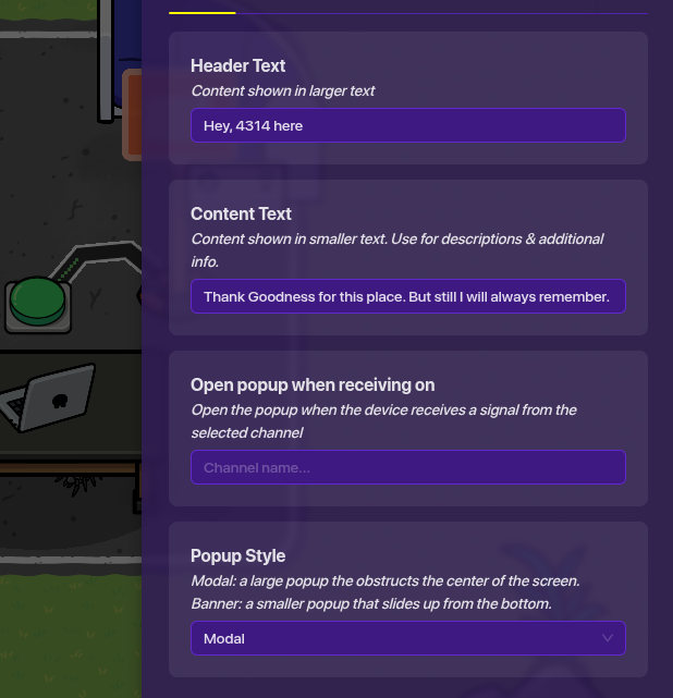 Heres the popup. it opens when the button is clicked