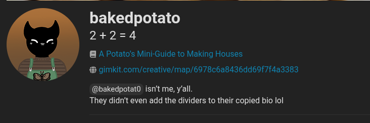Are you sure it’s a impostor I think it may be actually might be @bakedpotato