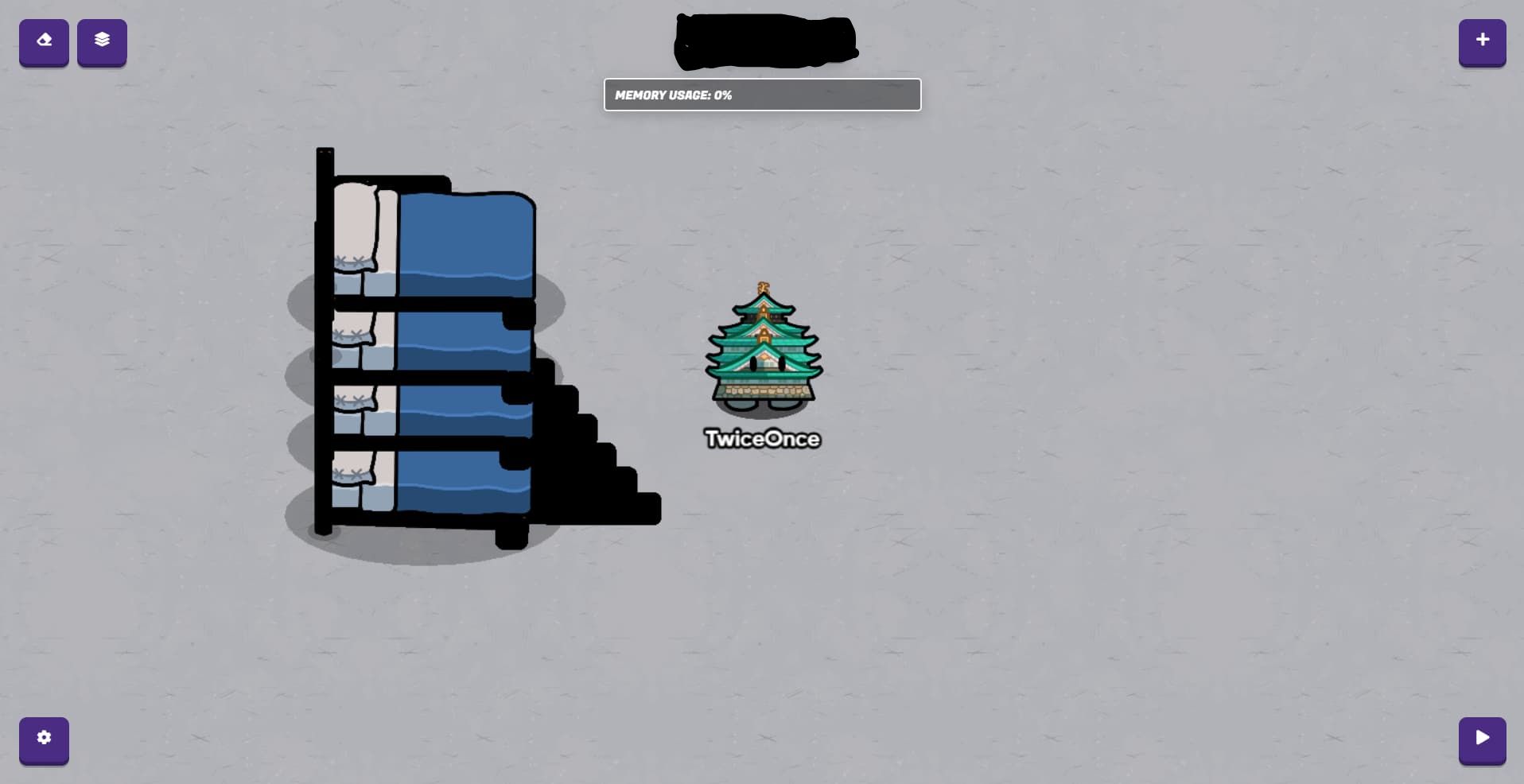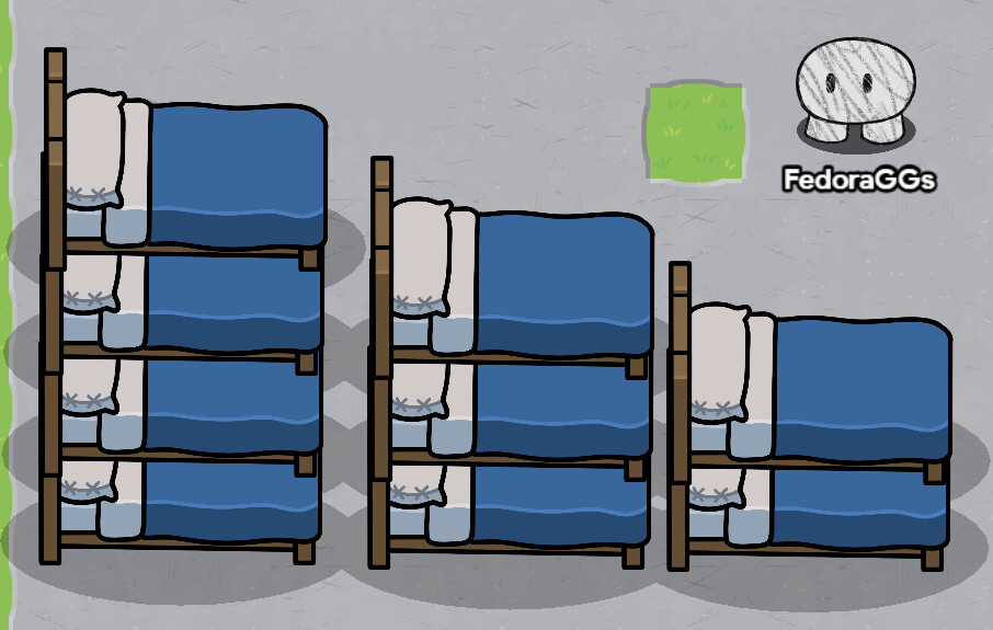 Since the beds have steel frames I got some black tinted metal poles and put it on the wooden parts of the bed, except for the little stub at the end, that one I used a black barrier. For the stairs they’re also black barriers. On the top bed I put another black barrier as a (I don’t know what to call it) leg stopper (?). Even though putting the beds on top of each other is an absolute nightmare because of how many props there are, I feel like this is an accurate replica. (This is also not really a memory efficient design because after you put all the beds you would take up like 8, 9, 10% memory) =D