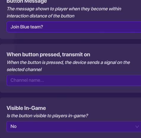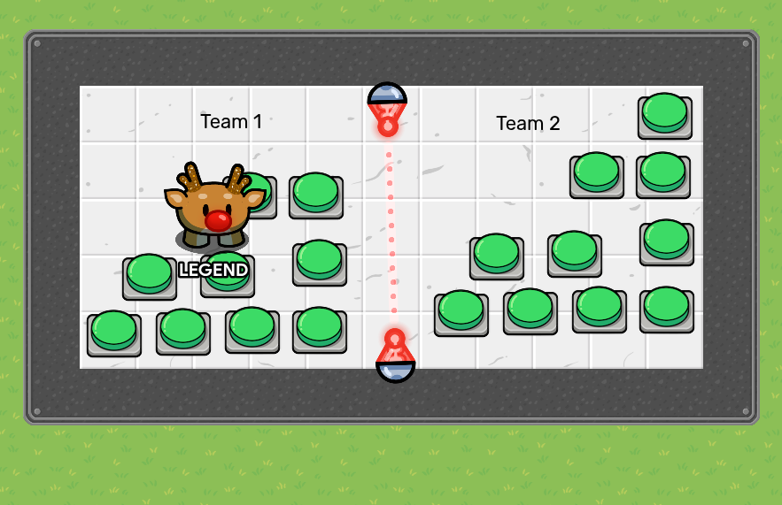 In my game there’re 2 teams. Everyone spawns in room 1. Each player can choose 1 of 10 buttons to interact with. Once they’ve interacted with the button they chose, they teleport to room 2. Team 1 teleports to the left side or room 2 and team 2 teleports to the right side of room 2.