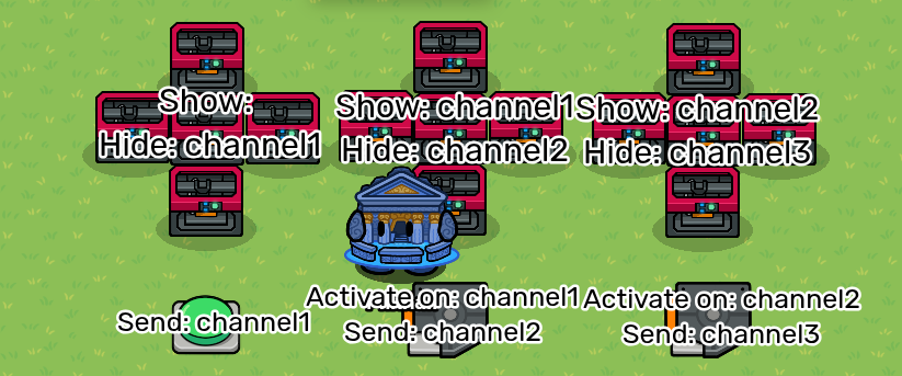 In short, instead of using several devices to activate each frame. It uses properties to send out numbered channels, like advanced but with blocks!