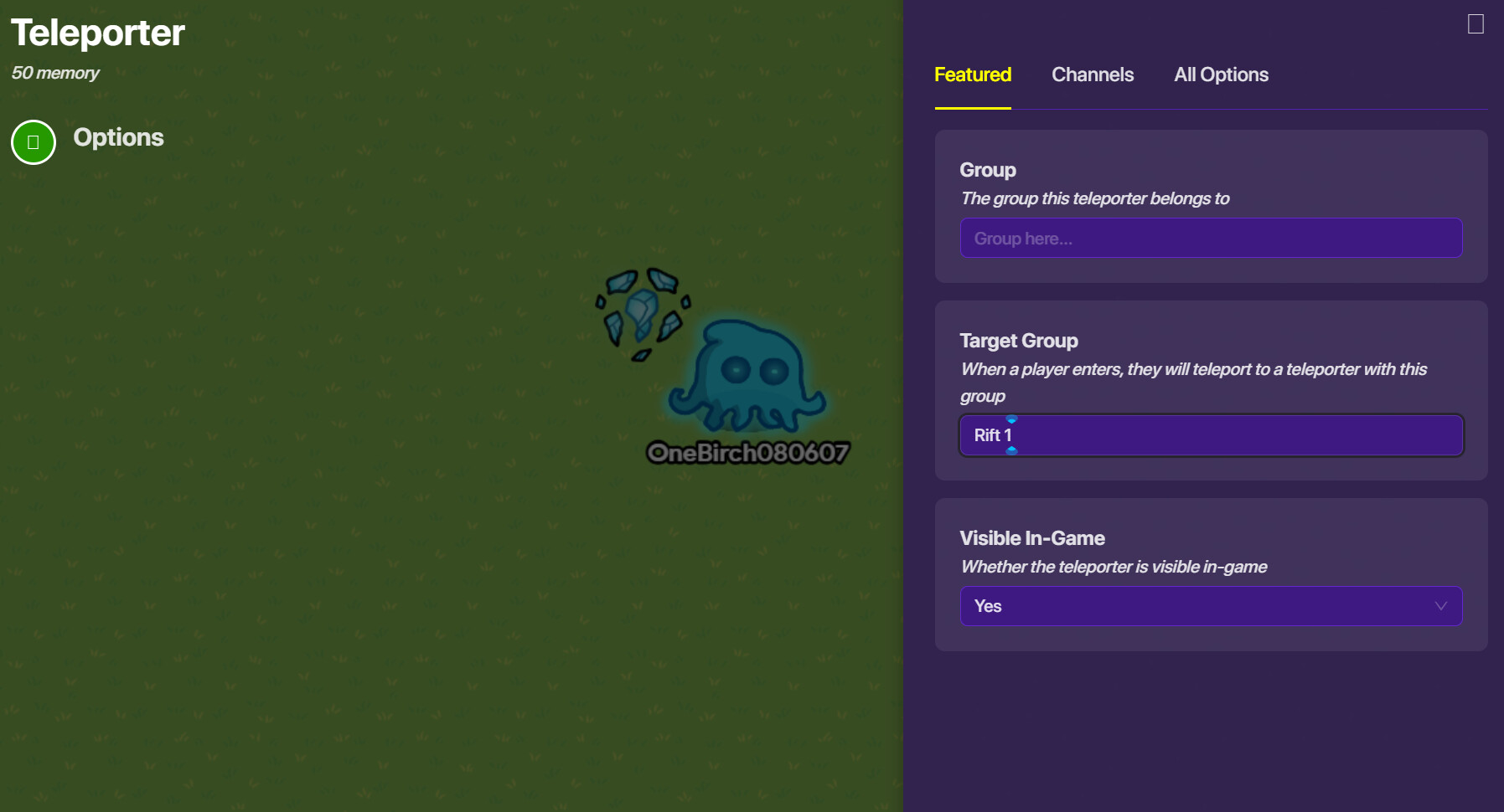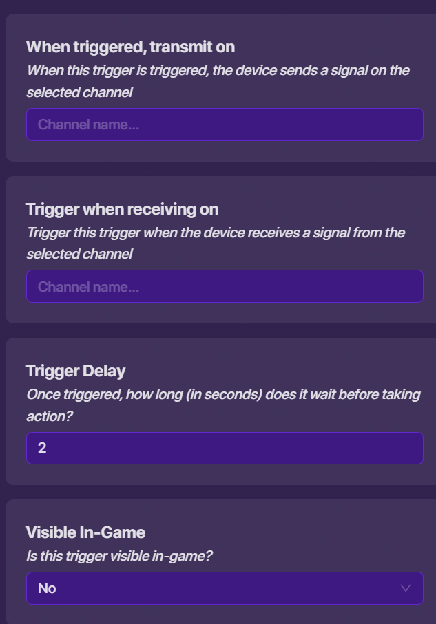 Next well work on the drop mechanic. If your game is a platformer, put a teleporter in the sky over the POI that they are going to drop. But if its in Top-Down just put a teleporter on the ground. But an invisible button in your drop choosing spot that says drop insert POI. Have the button Transmit on channel whatever the POI that will make the teleporter TP you there. It should look like this