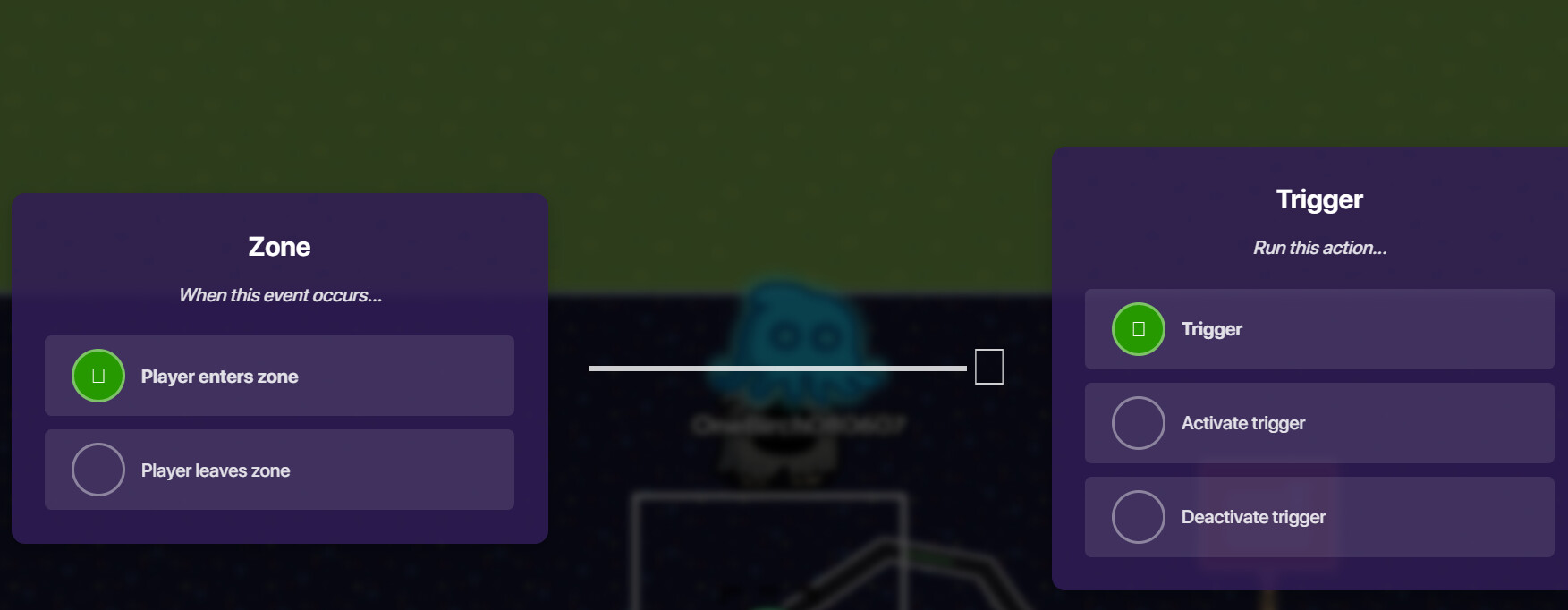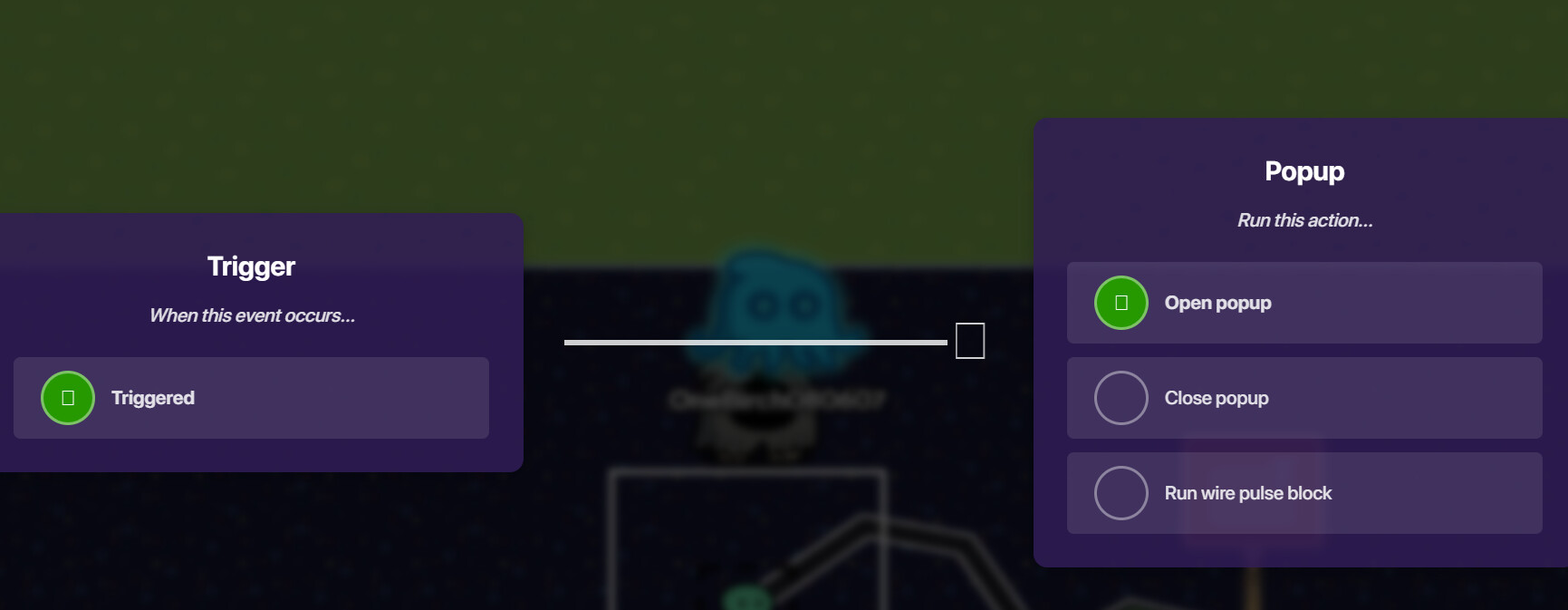 The trigger is wired to a popup with text