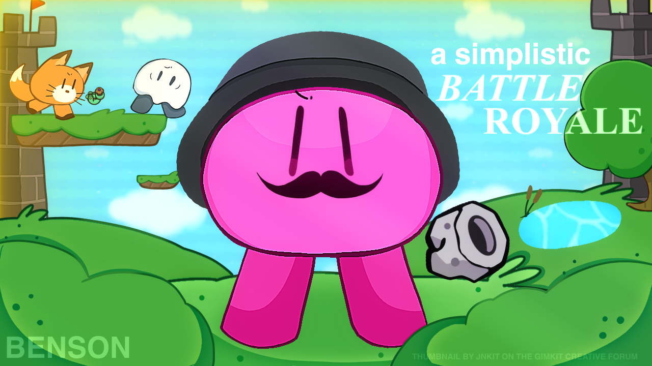 Name: A simplistic Battle Royale Summary: Game is a battle Royale game in platformer Setting: Grassy field with a pond and two towers (made of stone, I swear if you guys say anything sus) Gims: Any Actions: Fighting with a P.M.L, Stoneburtser, Quantum Portal, or Timekeeper. One of the gims has to be critical hitting another gim Author: Benson