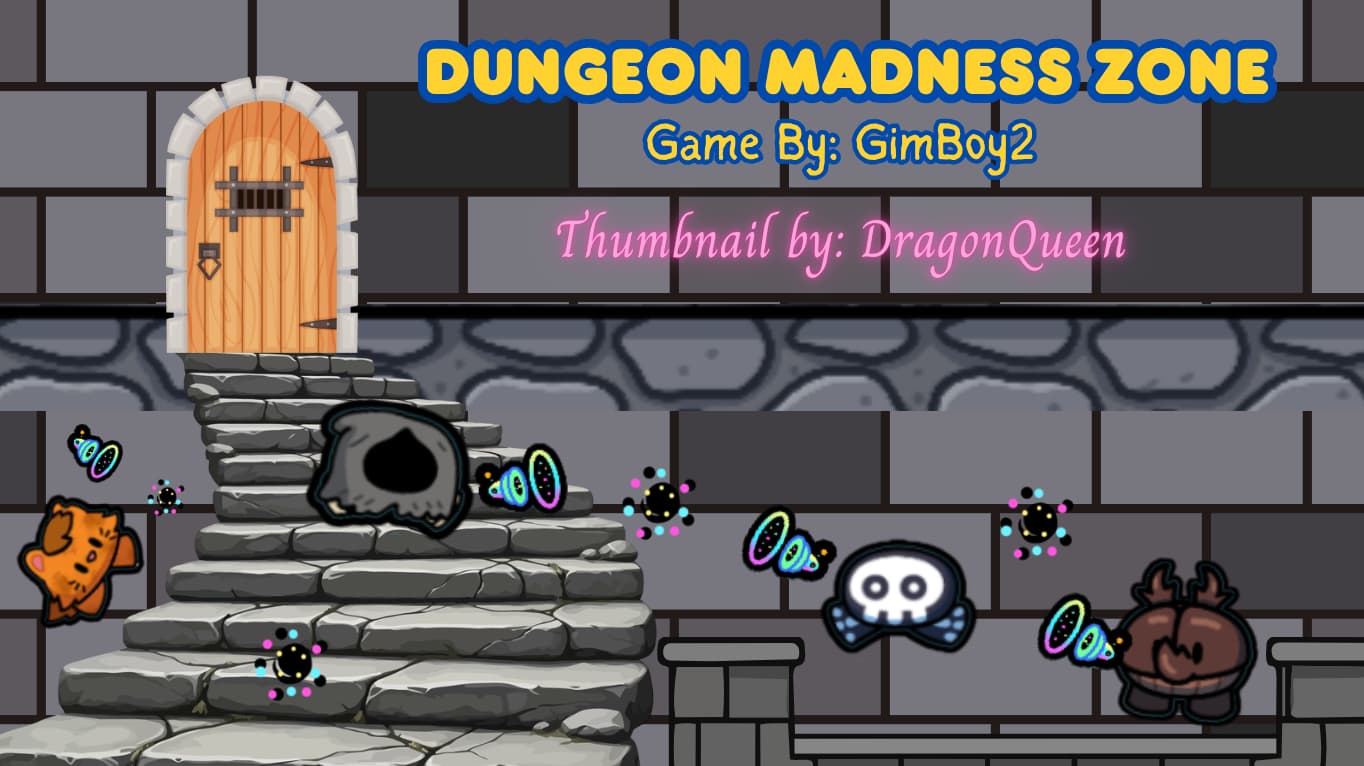 Name : Dungeon Madness Zone(needs to be bold and yellow with a blue outline)
