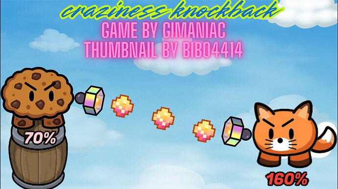 what I want:crumble (who is at 70%)looking up from standing on a barrel and sh0oting doge (who is at 160%)with a pixelator in the sky with props all around.