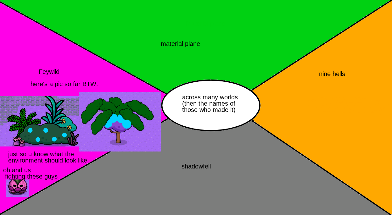 about: a DND style map where you traverse the feywild, shadowfell, material plane and 9 hells!