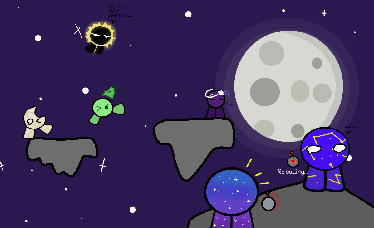 constellar fighting with orbit, both with evil eyes or PMLs, constellar’s gadget is reloading and orbit is running while sh00ting at constellar with a