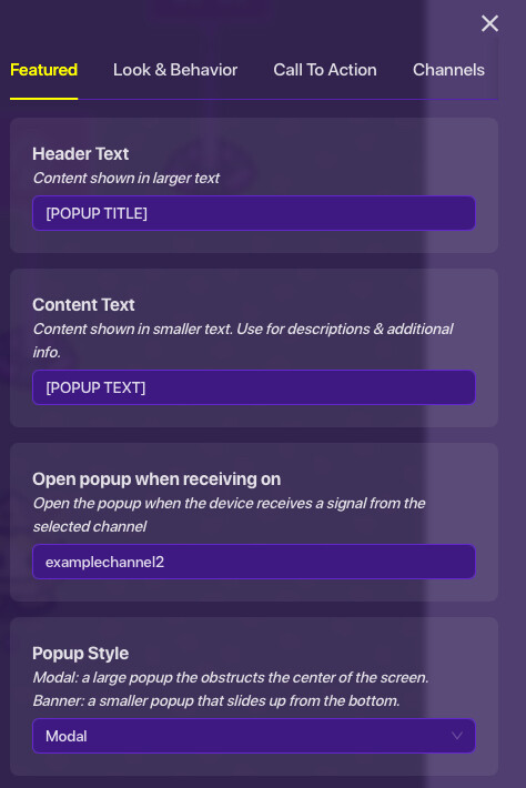 So I’m trying to make a popup and trying to figure out how to send a channel so it popups. Anyone know how to do this?