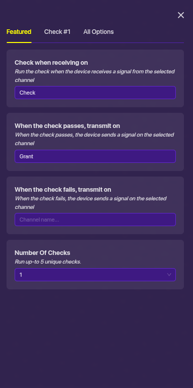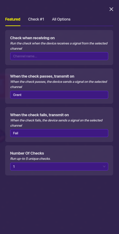 In the first Checker you will do recieve on check and if fail transmit on fail if passes transmit on Grant also, it will measure the item of your choice and do Equal to