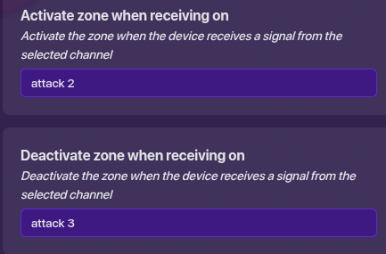 Make it appear on the channel “attack” and deactivate on “attack 2”